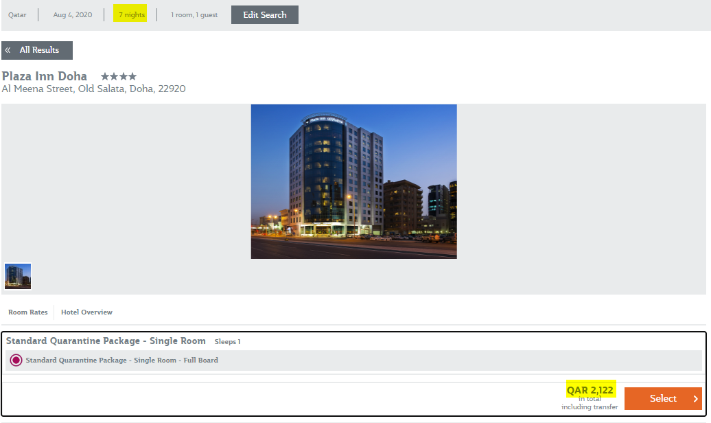 Otherwise, you can book directly for only 7 nights instead of 14 nights via this link: https://www.qatarairwaysholidays.com/qa-en/welcome-home-7-night-booking/overview
